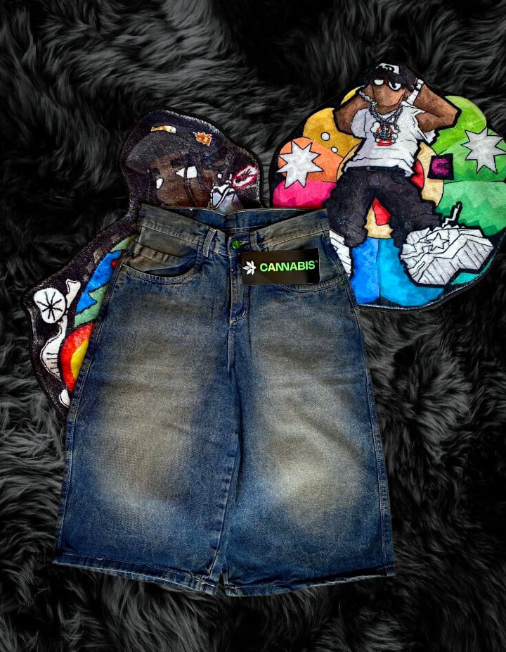 Shorts de mezclilla azul desgastada, estilo urbano y relajado
